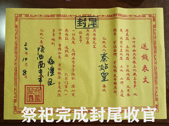 祭祀过程中显示时间,屏幕显示受用先人信息以及敬献人信息
